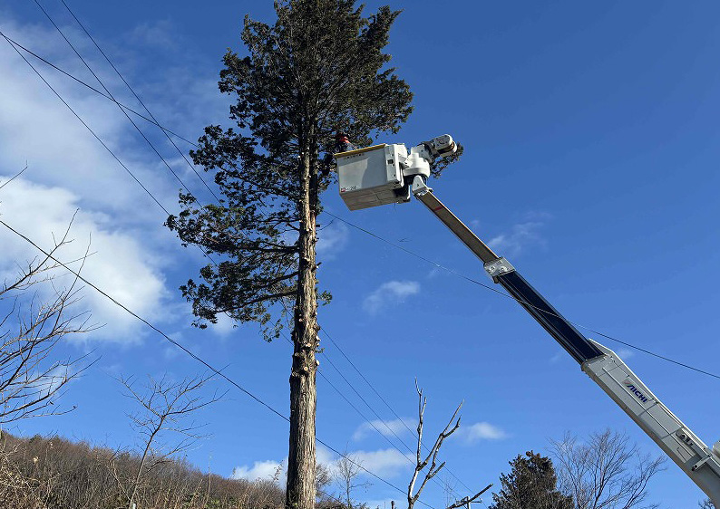 - 電線付近での伐採作業の場合、安全確保のため一時的に送電を停止する場合があります。その際は、事前に停電時間をお知らせいたします。ご家庭への影響が最小限になるよう調整します。